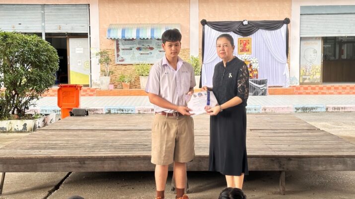 ผู้อำนวยการสถานศึกษามอบเกียรติบัตรให้กับนักเรียน ในการประกวดแข่งขันสมรรถนะความฉลาดรู้ตามแนวทางการประเมิน PISA ระดับประเทศ