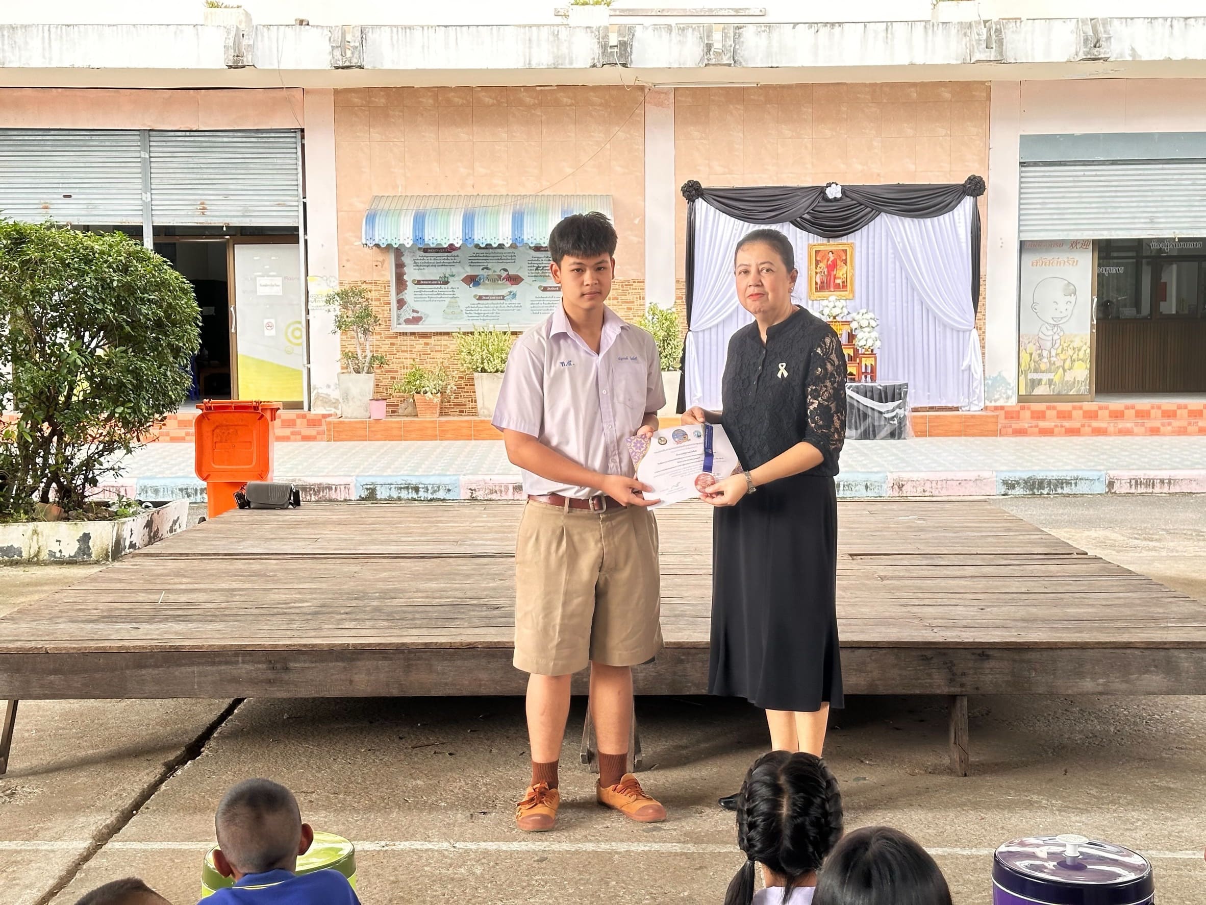 ผู้อำนวยการสถานศึกษามอบเกียรติบัตรให้กับนักเรียน ในการประกวดแข่งขันสมรรถนะความฉลาดรู้ตามแนวทางการประเมิน PISA ระดับประเทศ