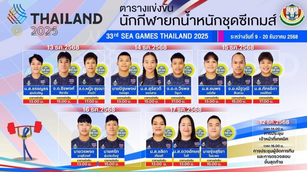 ร่วมส่งแรงเชียร์และเป็นกำลังใจให้กับคุณครูดวงอักษร ใจดี (ครูส้ม) ตัวแทนนักกีฬายกน้ำหนักทีมชาติไทย รุ่นมากกว่า 77 กิโลกรัมหญิง และนักกีฬายกน้ำหนักทีมชาติไทยทุกคน โดยครูส้มจะทำการแข่งขันวันที่ 17 ธันวาคม 2568 เวลา 13.00 น. มหกรรมการแข่งขันกีฬาซีเกมส์ ครั้งที่ 33 ประเทศไทยเป็นเจ้าภาพ SEA Games 2025 Thailand